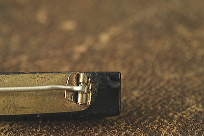 ![]() 厚みは7.3ミリ。(金具含まず)。落下防止にシリコンストッパーをお付けします。 |