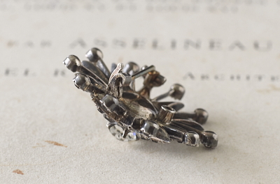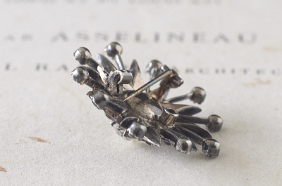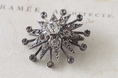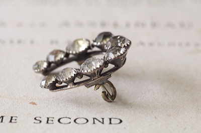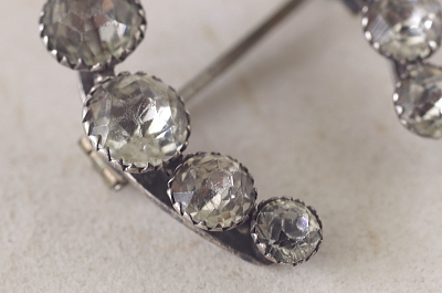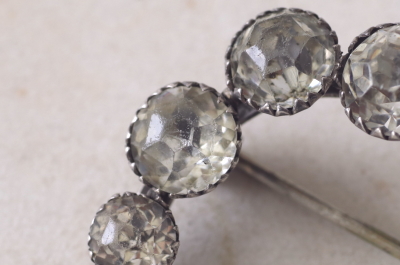 ★JW539 オールドペーストのシルバーブローチ ペーストという呼び方は、誰もが想像するとおり、ガラスを熱でペーストのように溶かして造る、その製法からこう呼ばれるようになったらしいが、イギリスのアンティークディーラーたちが普通に使う言葉なので、我々も考えることなく自然に使うようになった。いちおう、トリュフでは、アンティークペーストに敬意を払う意味も込めて、古い時代の、せいぜい20世紀半ばまでのプロダクトに使うように心がけている。古い時代のペーストは、古いダイヤモンドのカットスタイルに倣ったものも多く、素材の違いからくるものか輝きも近年の物とは全く異なる。輝きの総量としてはスワロフスキーに適うはずもないが、やはりダイヤに同じく輝きの味わいの違いである。今回ご紹介する品は19世紀末から20世紀初頭にかけてのアンティークのペーストジュエリーで、どれもダイヤモンドジュエリーさながらに銀台を使い、丁寧にカットしたペーストを1石ずつ爪留めした、良く造られた品で、ペーストの輝きも格別です。ぜひ実物で魅力的な輝きを確かめてください。 |