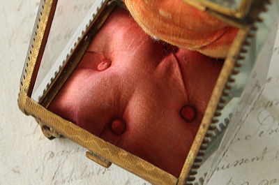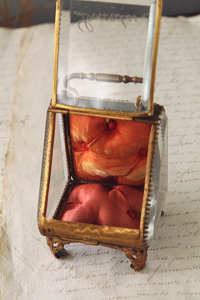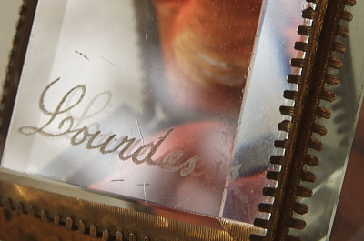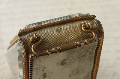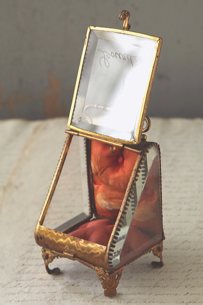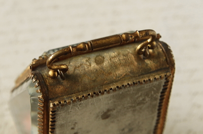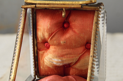 ★JW540 ルルドのポケットウォッチケース W6.3,D6,H8cm / ¥39,000.-〔税込み〕 送料:宅配便送料無料(3万円以上) ◆ご注文方法はこちら◆ フランスのカトリックの聖地ルルドの名が刻まれたガラスの箱。ジュエリーケースなどによく使われる、四方を面取りした厚いガラスに囲まれている。巡礼に訪れた記念に持ち帰られたものだろう。1900年頃の品なので、百年の時にさらされて、ガラスの角は幾らか欠けて、サテンのクッションは日差しと摩擦によって少し破れているが、色褪せた赤も、鈍く曇った真鍮の金色も時の長さを感じさせる優し気な表情をしている。お気に入りのジュエリーを飾って眺めるのにぴったりの、ジュエリーを美しく仕舞えるケースです。1900年頃のフランスから。 正面のガラスの角に欠けがあります。サテンのクッションが少し裂けていますが、他には気になるダメージはなく、全体的に綺麗な状態で残っています。 |