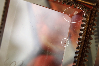 ![]() ガラス表面の小キズや角に細かな欠けが見られます。 |