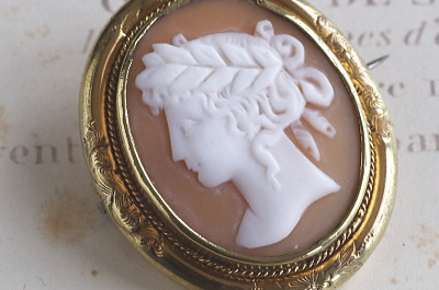 ![]() カメオ表面が少し摩耗して彫刻が柔らかい印象になっています。 |