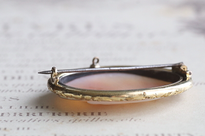 ★JW544-A ヴィクトリアンシェルカメオブローチ 女神と天使 W42×H34.7mm(11.4g) / シェル / ゴールドトーンメッキ 〔品質保証書付き〕 送料:宅配便送料無料(3万円以上) ◆ご注文方法はこちら◆ 淡クシックなピンクベージュの背景に、つややかな白で、女神が天使に何かを手渡すシーンを彫り上げたカメオ。神話的世界の幻想と、ヴィクトリアンアンティークの味わいをたのしめるブローチは、19世紀後期のイギリスから。 カメオ表面が少し摩耗して彫刻が柔らかい印象になっています。アンティークカメオにはしばしば見られる状態ですが、これはこれで全体が優しい雰囲気になっていていいと思います。光に透かすとストレスラインがいくらか見られますが、あまり目立たず特には気にならないと思います。それ以外は目立つダメージの見られない、きれいなしっかりした状態です。落下防止にシリコンストッパーをお付けします。 |