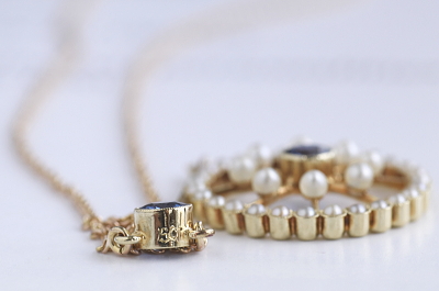 ★JW548 サファイア&パール ラヴァリエールネックレス ペンダントトップ:19.2×45.4mm チェーン:L43.5cm(4.0g) / sold 天然サファイア / 本真珠 / K15ゴールド 〔品質保証書付き〕 送料:宅配便送料無料(3万円以上) ◆ご注文方法はこちら◆ 鮮やかみを感じる美しいブルーのサファイアを2石使ったラヴァリエールネックレス。20世紀初期のエドワーディアンスタイルですが、この時期のシードパールジュエリーには、センターストーンにサファイアを使うことはそう多くないので、出物のサファイアがあれば仕入れたいのが人情ですが、現実はなかなか厳しく、今回の仕入れもサファイアの当時のオリジナルのペンダントはこれ1点限りとなります。 数は少なくてもも、見つかれば、サファイアは良質なブルーの石が入っていることが多く、こちらもいいブルーサファイアです。シードパールはきれいに粒を揃えて色の揃え方もかなり頑張って整えられています。ドレッシーなラヴァリエールスタイルですが、幾何学的な要素も取り入れてシンプルにまとめられているので、あまり片意地張らずに身に着けられそうです。 チェーンの長さを調節出来るように加工もできますので、そうすれば尚更幅広くお使いいただけます。(加工はお気軽にご相談ください。)20世紀初期の英国製。 とくに気になるダメージのないきれいなしっかりした状態です。 |