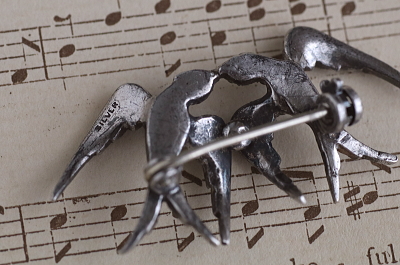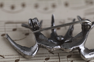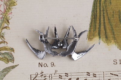 ★JW550C 2羽のツバメのマーカサイトシルバーブローチ 38×18mm(4.7g) / sold マーカサイト / シルバー 送料:Aランク 【送料ページはこちら】 ◆ご注文方法はこちら◆ 仲睦まじく寄り添った2羽のツバメには、華奢な身体と羽の表面を覆い尽くすように、細かいマーカサイトが煌きます。強く輝く良質なマーカサイトが、異なるサイズで、一粒ずつ丁寧に留められた美しい仕上がりが自慢で、シルエットがとても洗練されていて、程よい持ち重りにも高級感があります。20世紀中期の品と思われるヨーロッパ製。 とくに気になるダメージのないきれいなしっかりした状態です。 とくに気になるダメージのないきれいなしっかりした状態です。 |