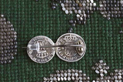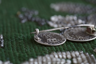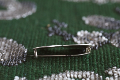 ★JW552A 銀貨のブローチ 31×16mm (3.2g) / ¥22,000.-〔税込み・送料別〕 シルバー / スチールピン 送料:Aランク 【送料ページはこちら】 ◆ご注文方法はこちら◆ 小さな銀貨2枚は、1円玉よりもはるかに小さい。左のコインは、1761年、スペイン植民地時代のヌエバ・エスパーニャ(現在のメキシコ)の1/2レアル銀貨。右のコインの肖像は、ナポレオンの妻、マリー・ルイーズで、1830年のピアチェンツァ公国(現在のイタリアのパルマ)の5ソルディ銀貨です。ブローチに仕立てられたのは、おそらく19世紀末頃と思われます。この2枚の関係はわかりませんが、普段扱うアンティークでは、なかなかお目に掛かれない、200~250年以上昔の時代物のブローチ。コインブローチは、その出自で世界史も辿れる、知的好奇心をくすぐるジュエリーです。 銀貨は自然な色付きのまま。とくに気になるダメージのない、きれいなしっかりした状態です。落下防止にシリコンストッパーをお付けします。 |