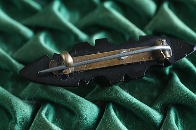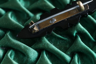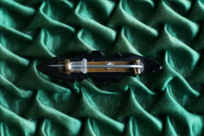 ★JW552F ヴィクトリアンジェット バーブローチ 43×11mm (3.1g) / ¥16,500.-〔税込み・送料別〕 ジェット / 真鍮ピン 送料:Aランク 【送料ページはこちら】 定形外郵便対応【ご注文時にお申し付けください】 ◆ご注文方法はこちら◆ 艶やかな黒く光るのは、19世紀にイギリスで流行した、ジェットを彫刻したバーブローチ。19世紀当時から安価に量産できる代替品が流通したことから、現地でも混同して扱われ、本物のジェットを判別出来るアンティークディーラーは少ないですが、当店が扱うのは、正真正銘のヴィクトリアンジェット。丁寧に再研磨して、黒い光沢を蘇らせました。このあたりの黒の違いが気になってくると、アンティーク道も極まりつつあるのかもしれないですよ。一見地味だけれど、何やら奥の深そうなジェットジュエリーです。道の途中のかたは、ぜひひとつ手にしてみてください。 とくに気になるダメージのない、しっかりした状態です。落下防止にシリコンストッパーをお付けします。 |