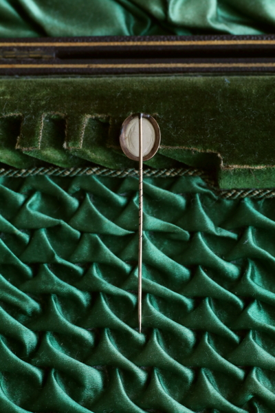 ★JW552H ヴィクトリアン ラーヴァカメオ ピンブローチ 11×14(カメオ),L60mm (1.2g) / ¥13,600.-〔税込み・送料別〕 ラーヴァ / 合金 送料:Aランク 【送料ページはこちら】 定形外郵便対応【ご注文時にお申し付けください】 ◆ご注文方法はこちら◆ ラーヴァには様々な色がありますが、こちらは黄色みがかったクレーのラーヴァを彫刻したもの。小さなカメオほど彫刻がぞんざいになってしまうものですが、なかなかきっちりと女神の横顔を彫刻しています。このタイピン型のピンブローチは、なかなか身に着け方もむずかしいのかな、と思いつつ、ラーヴァの質感と、この形状だからこそ深まるアンティーク感に、堪らず手にしたひと品。凛とした渋い存在感です。19世紀のイタリアから。 表面に産毛くらいのひびが数本ありますが、肉眼ではほとんど分からない程度。枠にしっかり留まっているので強度的な問題ないと思われます。落下防止にシリコンストッパーをお付けします。 |