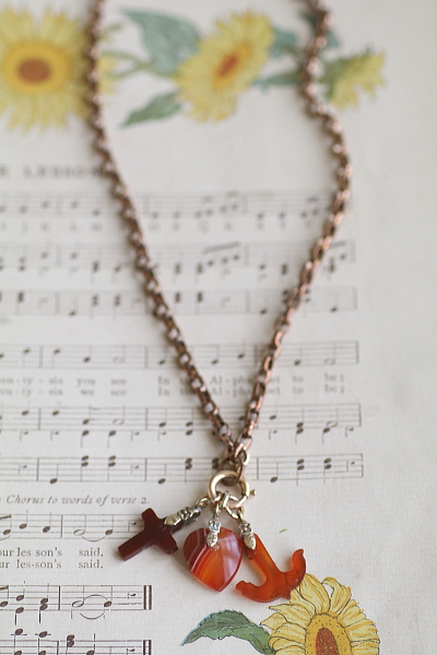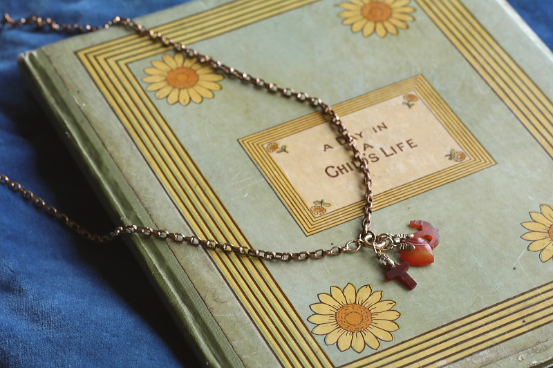 JW554D スコティッシュアゲート クロスチャーム 11×22mm(マルカン含まず)(0.5g) / sold 天然カルセドニー/ 真鍮 送料:Aランク 【送料ページはこちら】 定形外郵便対応【ご注文時にお申し付けください】 ◆ご注文方法はこちら◆ 指先に載るほどの、小さな半透明のレディッシュブラウンの十字架。形も整っておらず、表面に研磨痕も残る、ぞんざいな仕事ぶりも、天然石相手の手仕事だと思えば、却って愛着を感じずにはいられない、愛くるしいチャームです。ありそうで意外と珍しい、とっても小さなアゲートのチャームは、19世紀後期のスコットランドのスーベニールだと思われます。 とくに気になるダメージのないきれいなしっかりした状態です。ネックレスチェーンは付属せず、チャームのみの販売です。 |