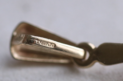 ![]() センターストーンの裏に欠け。 K9ゴールドのホールマーク。 |